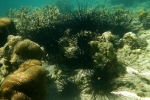 When coral cover is reduced there is increased colonization by algae, which in turn inhibits coral recruitment – i.e., a positive feedback exists (Mumby et al. 2007, Norström et al. 2009). Herbivores (mainly fish) control the growth of algae through grazing, scraping, and bioeroding (Nyström and Folke 2001). Regime shifts to coralimorpharians, soft corals, and sponges have been attributed to a combination of bad water quality, bleaching events and diseases outbreaks that weaken corals and inhibit their reestablishment (Mumby et al. 2007, Norström et al. 2009). These regime shifts are more likely to occur in settings where herbivores control macroalgae populations. On the other hand, regime shifts toward urchin barrens imply a strong component of biodiversity loss of both algae grazers and predators, leaving urchins as dominant herbivores. Shifts to urchin dominance have been reported to follow pulse disturbances as bleaching events and low-tides (Norström et al. 2009).