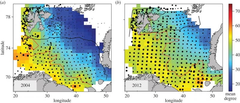 Hátún, H. , Payne, M.R., Beaugrand, G., Reid, P.C., Sandø, A.B., Drange, H., Hansen, B., Jacobsen, J.A, & Bloch, D. (2009). Large bio-geographical shifts in the north-eastern Atlantic Ocean: From the subpolar gyre, via plankton, to blue whiting and pilot whales. Progress in Oceanography, 80: 149–162.